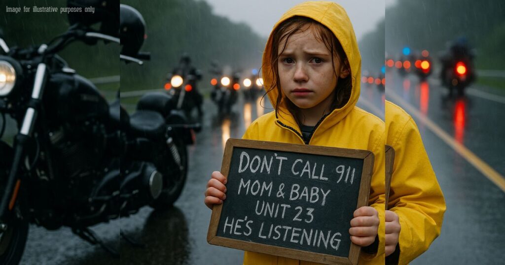 She stepped into my lane like a flare in the rain—yellow coat, shaking hands, a chalkboard pressed to her chest. Four words, smeared by water, hit me harder than any siren: DON’T CALL 911. Under it, a scrawl: MOM & BABY—UNIT 23. HE’S LISTENING. I braked so hard my back tire chirped. One blink and […]
