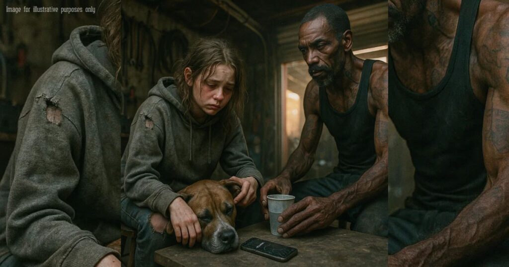 She stepped into my garage like the last two minutes before a storm — helmet cracked, mirror dangling by a thread of tape, eyes set to silent the way you mute a phone when you’re hiding in a bathroom. The clock over the tool chest said 3:28. At five o’clock the landlord’s son would “inspect” their apartment, which really meant wander, judge, and invent reasons to push them out. If her bike didn’t run, she’d miss her shift, and a missed shift would become a note in a folder, and a note in a folder was how families vanished from leases around here.