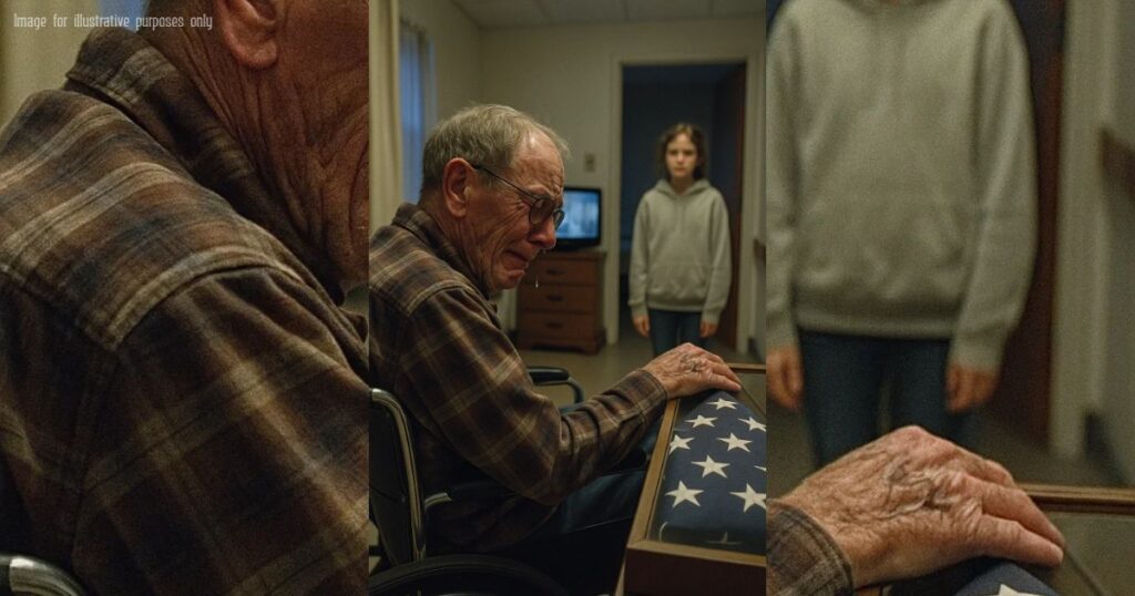 Grandpa’s good hand rested on the flag. Tears slid down his face, quiet and steady.